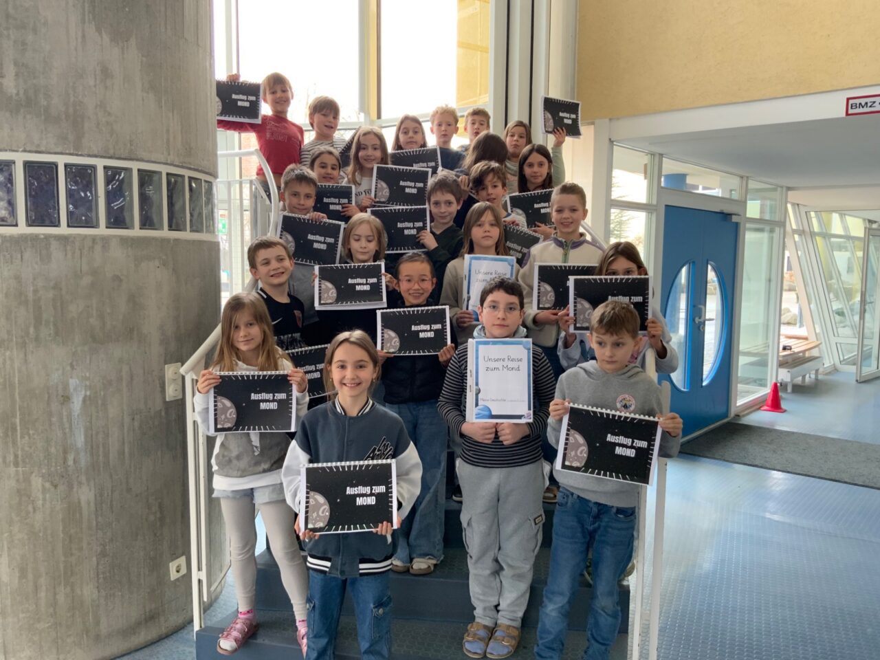 Ende November gab es für die Klasse 3c einen besonders aufregenden Tag. Sie flog zum Mond. Wirklich zum Mond? Ja, mit einer Schreibreise! In vier Schreibetappen flogen wir durch den Weltraum und schrieben eine fesselnde Geschichte über Leo, einen Jungen, der im Weltall gefangen war. Wir entschieden bei jeder Etappe selbst, wie unsere Geschichte weiter ging. Alle Hände schwitzten, die Köpfe rauchten. Vier Etappen – gefüllt mit Kreativität, Ideen, Fantasie, Lachen und viel Spaß! Liebe Leser, wir könnten unendlich viele Sachen aufzählen…aber jetzt in aller Kürze: Schreibreisen sind spitze!