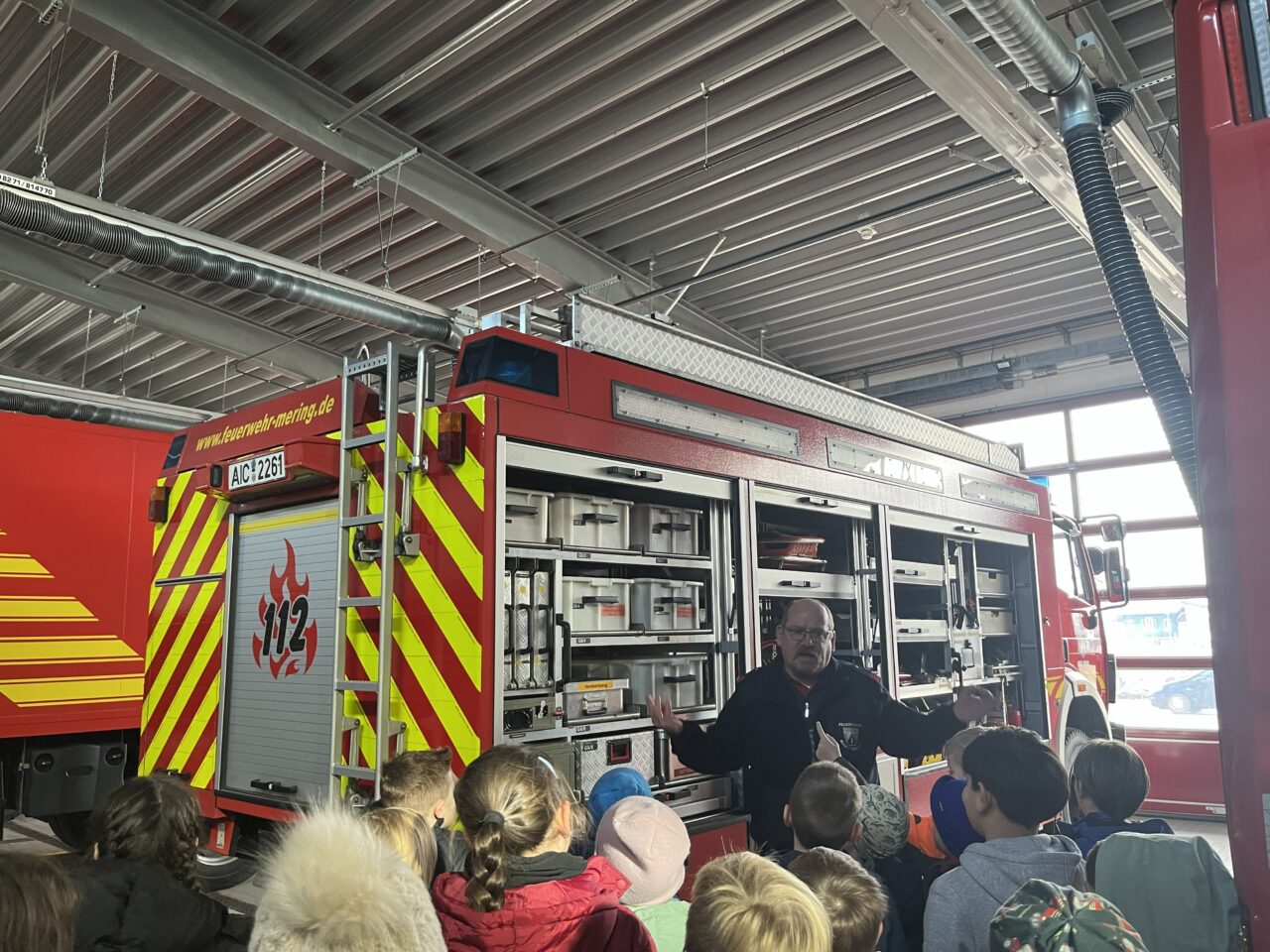 Einen ganz besonderen Unterrichtstag erlebten die Schülerinnen und Schüler der 3. Klasse: Gemeinsam besuchten sie die Freiwillige Feuerwehr in Mering und bekamen einen spannenden Einblick in die Arbeit der Feuerwehr.