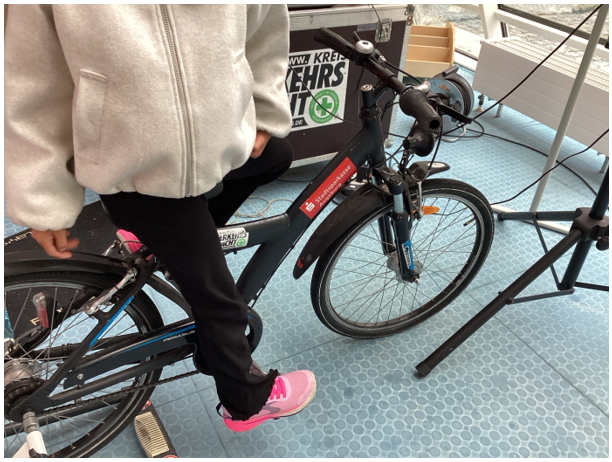 Kognition und Reaktion spielten ebenfalls eine wichtige Rolle und wurden an verschiedenen Übungen erprobt. Ein Highlight war der Fahrsimulator, auf dem die Kinder ihre Reaktionsfähigkeit unter Beweis stellen und rechtzeitig bremsen mussten.