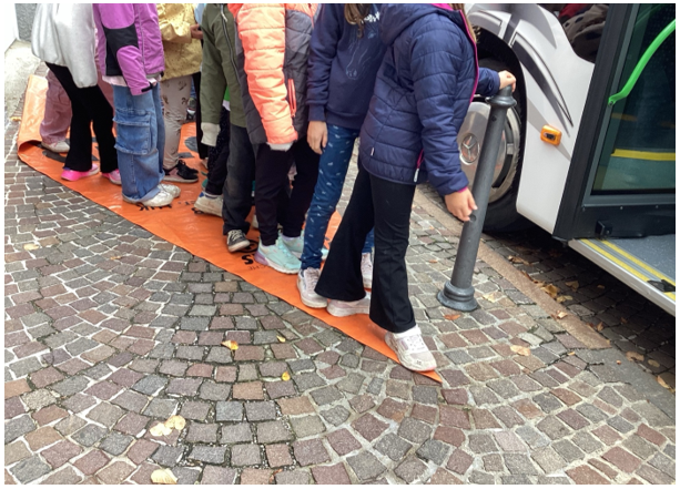 Mittels eines für den Tag zur Verfügung gestellten Busses der Firma Demmlmair konnten die jungen Verkehrsteilnehmerinnen und Verkehrsteilnehmer auf sichere Weise nicht nur im Film, sondern auch in der Realität den toten Winkel kennenlernen. Vielen Dank an das Busunternehmen Demmelmair!
